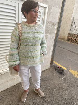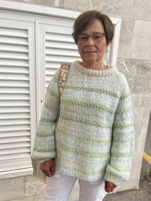 Herlig genser som passer perfekt over kjolen eller blusen. Genseren strikkes med Bella og Martha by Permin. Strikkes ovenfra og ned med raglanøknininger, glattstrikk og strukturstrikk.