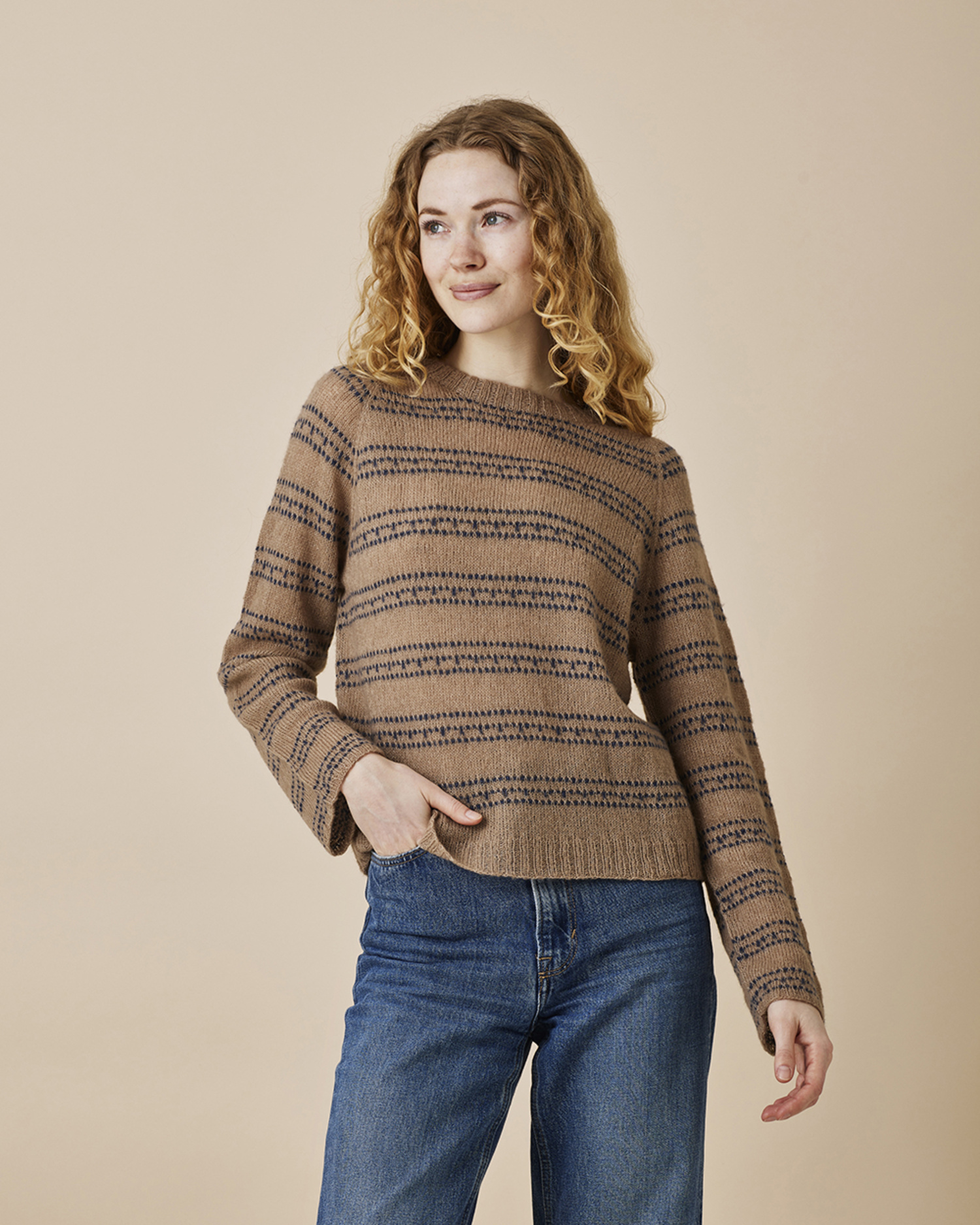 | Garn og garnforbruk: | 880120/Camel 4 (4) 5 (5) 5 (6) ngl. 880115/Navy blue 1 (1) 1 (1) 1 (1) ngl |