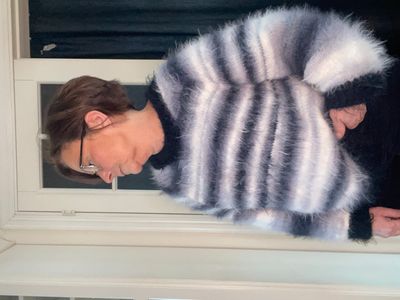 Strikkefasthet/Pinner; Rundpinner 80 cm/ settpinner eller magic loop på stor rundpinne 4,5 mm til vrangbord på ermer og bol, 4 mm til vrangbord på hals, 5 mm til resten av genseren– eller de pinnene du må bruke for å få 18 m i glattstrikk pr. 10 cm i bredde.