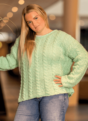 Superfin flettegenser som strikkes i Deilig by KnitNorway.  Design; Nina Birkeland i samarbeid med KnitNorway.