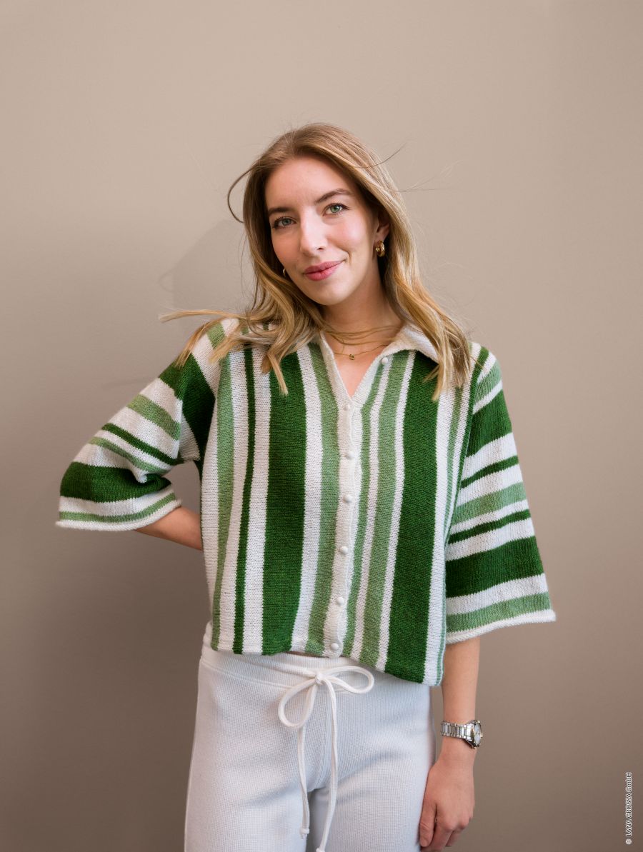 Stilig Polojakke med striper. Design av Tove Lindtein for Lana Grossa Oppskriften er kun i papirversjon og koster derfor kr.100,-